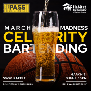 Come watch the first round of March Madness! Shari Andresen and your favorite Women Build celebrities will be bartending at The Pass (2303 E Washington St) on Thursday, March 21st from 5-7pm. There will be two 50/50 raffles (one at 6pm and the second at 7pm) benefitting Women Build.