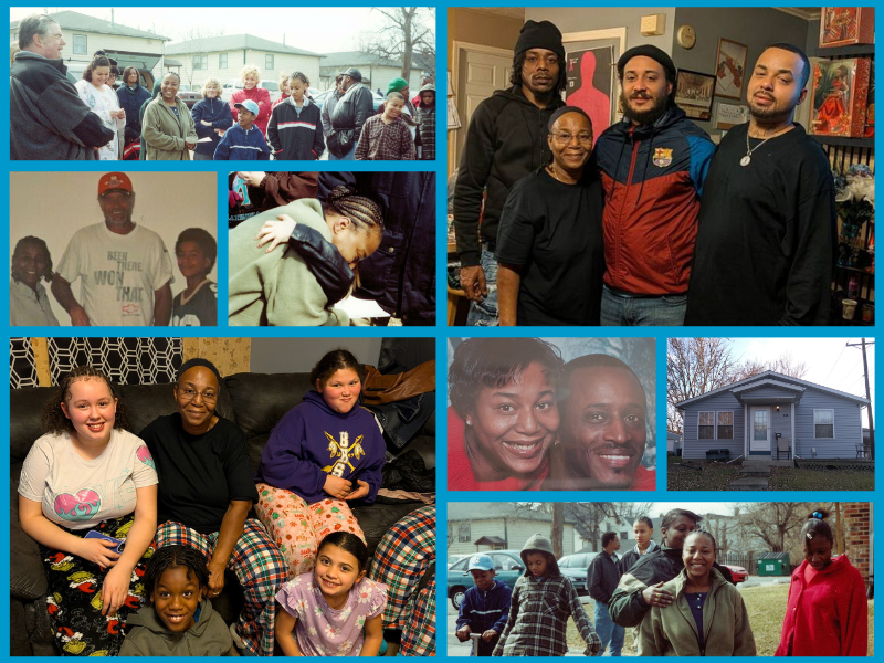 While her foster mother kept an eye on her other children, Frazier worked on building their home alongside her son J.R., who was old enough to assist his mother in earning 250 hours of sweat equity. They grew close to the Thorntons, who lived next door. Their daughter, Cindy, would make cookies and serve them to the volunteers. Even now, the Thorntons and Fraziers are more like family, always looking out for one another.